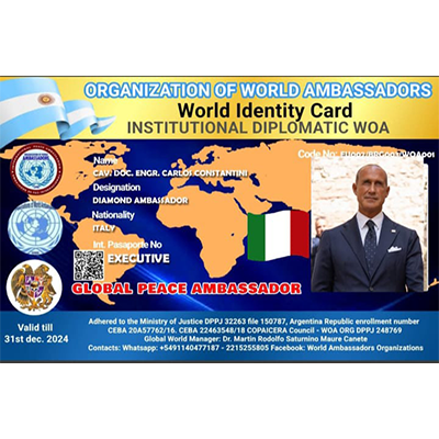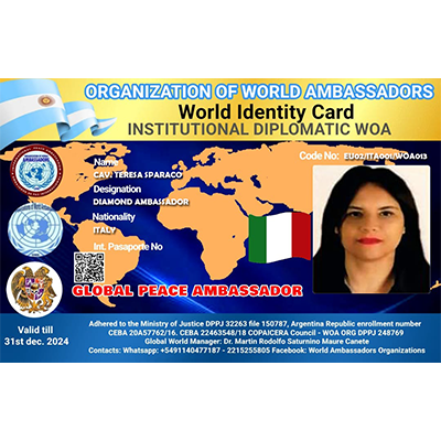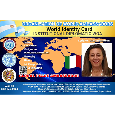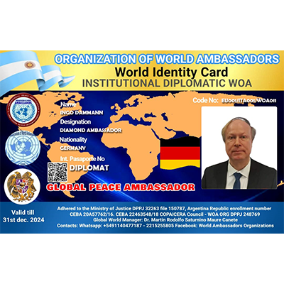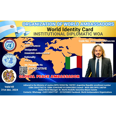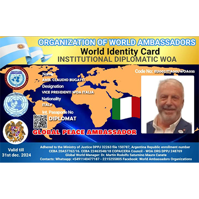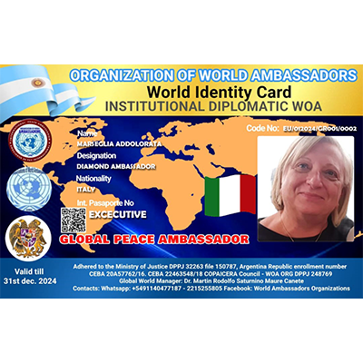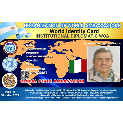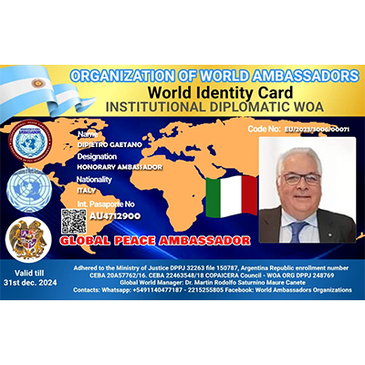 World Organization of Ambassadors, Human Rights Agents, Diplomats and former international executives, Chaplains of Peace forces and Ministers of Peacebuilding for the peoples, a non-governmental organization